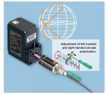 SK0101偏振分析仪可用于校准和量化延迟光学器件,例如 Schäfter+Kirchhoff 生产的集成四分之一波片的光纤准直器)。