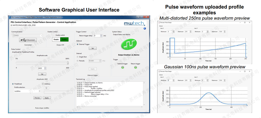 PSL-AWG是一款脉冲种子激光控制接口/任意波形发生器是一种允许编程/生成任意脉冲波形的设备。 内部存储器包括 8 个从 5 到 500ns 的标准方形脉冲宽度配置文件。 也接受可自由编程的波形曲线形状。 任意波形脉冲轮廓可以直接从两列(时间与幅度)逗号分隔文件 (.csv) 上传。