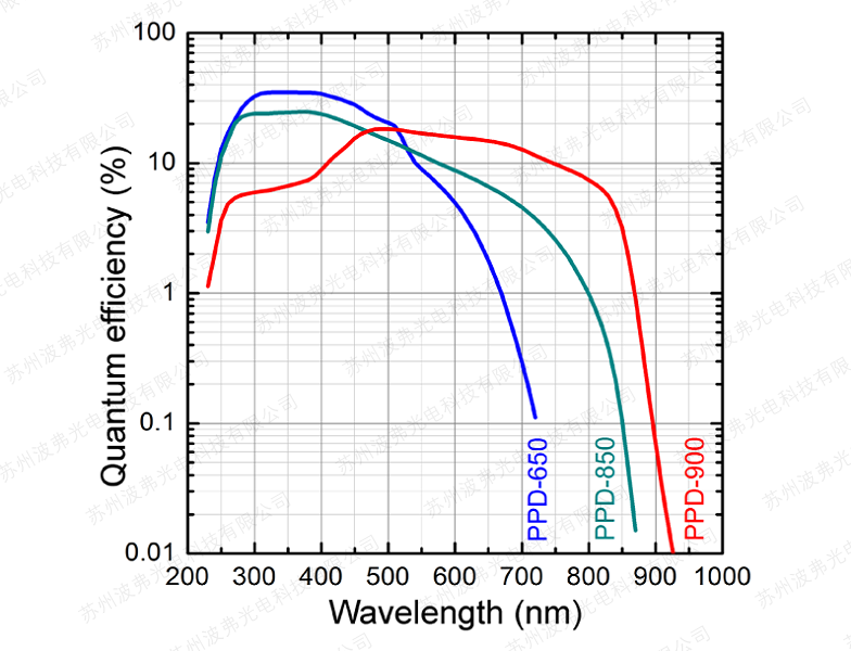 提供三种型号的PPD以适应不同的光谱范围。 (请参阅规格表。)PPD-850和PPD-900版本具有扩展的红色灵敏度,并具有PMT的集成热电冷却功能,以降低暗计数率。这两个版本都包含DPS-1电源模块。非制冷PPD-650版本只需要15V,因此DPS-1是这种情况下的可选电源。