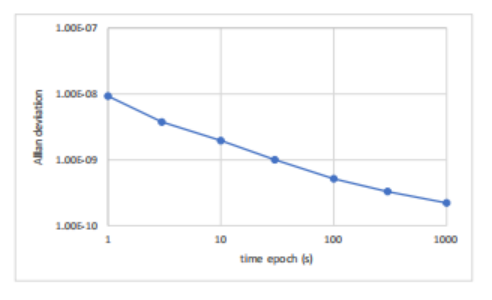 l 当τ=100秒时,Allan偏差小于1e-9。 |