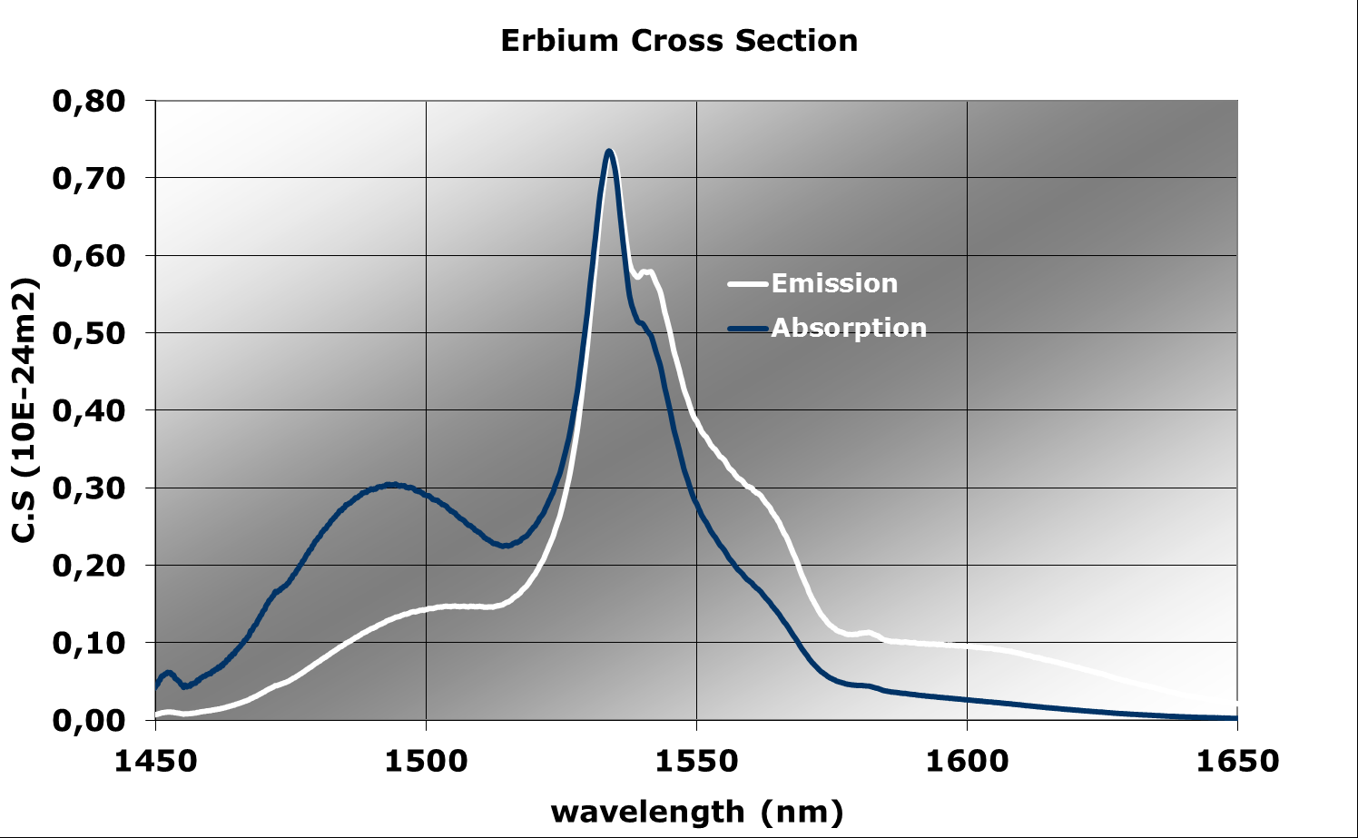 | Er吸收截面 @ 1536 nm (m²) | 5,90E-25 |